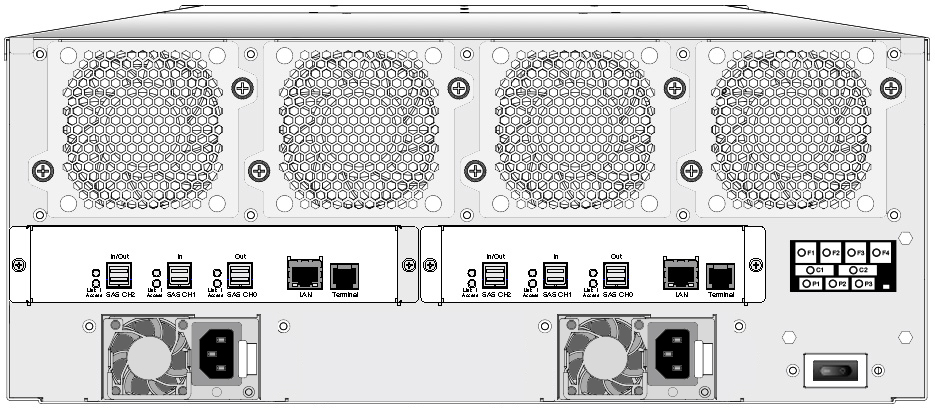 • Host Interface per Expander Module :Two 12Gb/s Min SAS HD 4x wide ports via two SFF-8644 connections • Expansion Interface per Expander Module : One 12Gb/s Min SAS HD 4x wide port via one SFF-8644 connection |